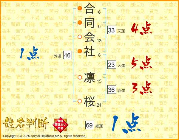 合(6画)同(6画)会(13画)社(8画) 凛(15画)桜(21画)