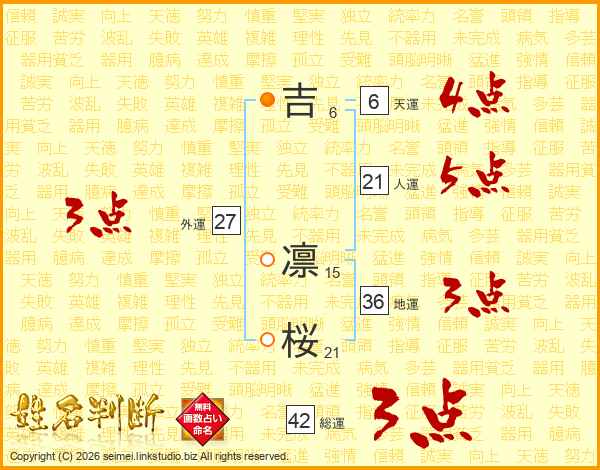吉凛桜さんの総運は42画の3点!