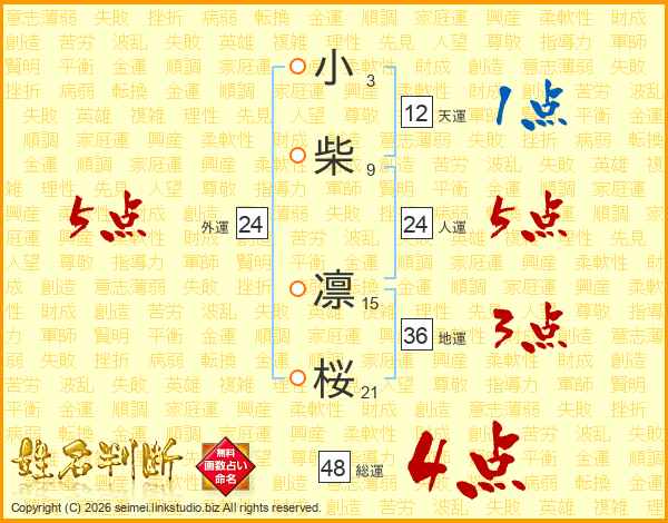 小柴凛桜さんの人運は24画の5点!