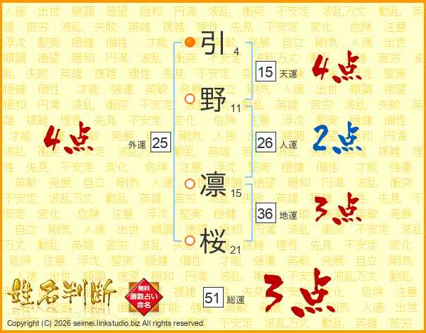 引野凛桜さんの総運は51画の3点!