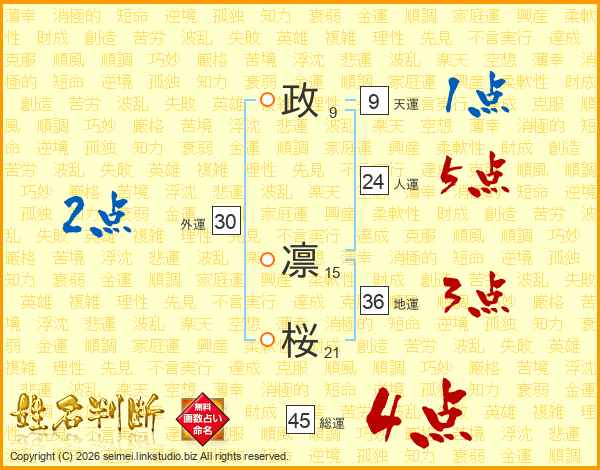 政凛桜さんの総運は45画の4点!