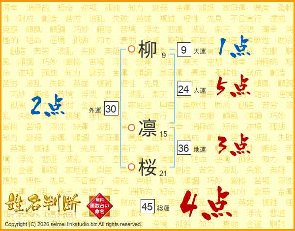 柳凛桜さんの総運は45画の4点!