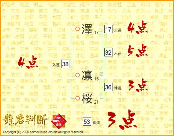 澤凛桜さんの外運は38画の4点!