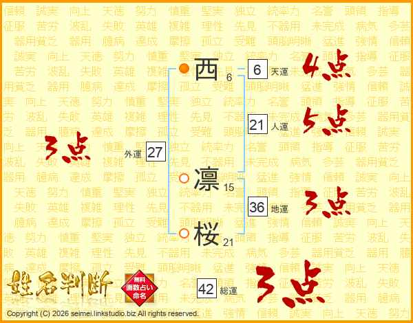 西凛桜さんの地運は36画の3点!