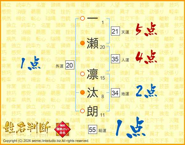 一瀬凛汰朗さんの総運は55画の1点!
