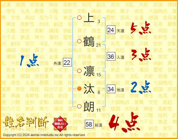 上鶴凛汰朗さんの総運は58画の4点!