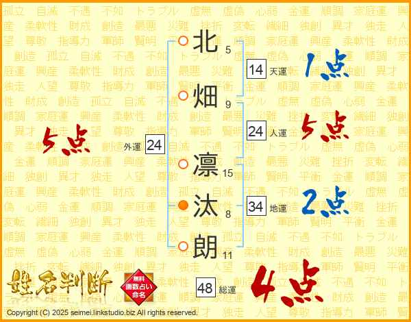 北畑凛汰朗さんの総運は48画の4点!