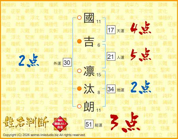 國吉凛汰朗さんの天運は17画の4点!