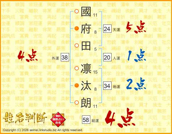 國府田凛汰朗さんの天運は24画の5点!