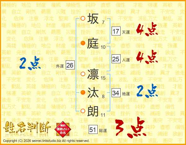 坂庭凛汰朗さんの総運は51画の3点!