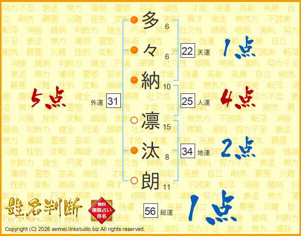 多々納凛汰朗さんの総運は56画の1点!