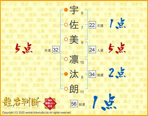 宇佐美凛汰朗さんの総運は56画の1点!