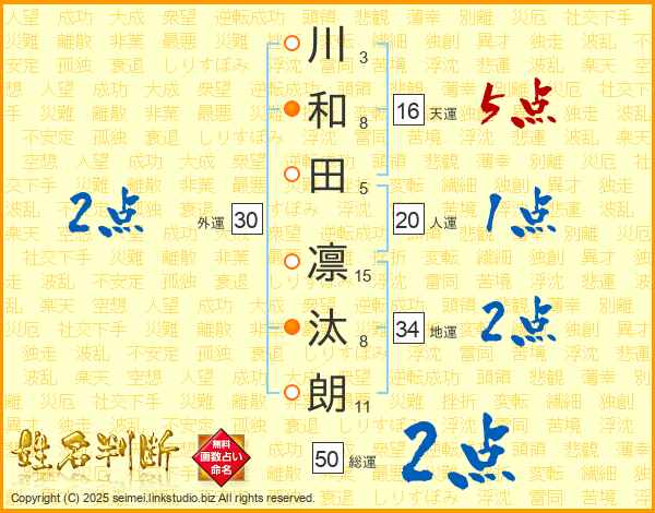 川和田凛汰朗さんの地運は34画の2点!