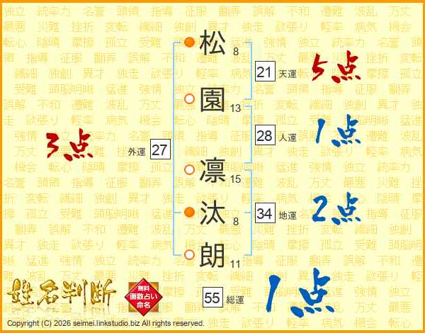 松園凛汰朗さんの総運は55画の1点!