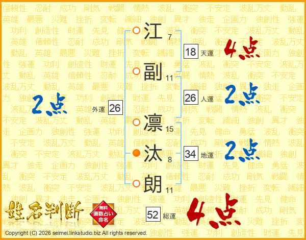 江副凛汰朗さんの総運は52画の4点!