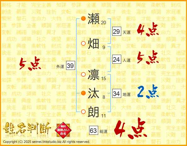 瀬畑凛汰朗さんの総運は63画の4点!