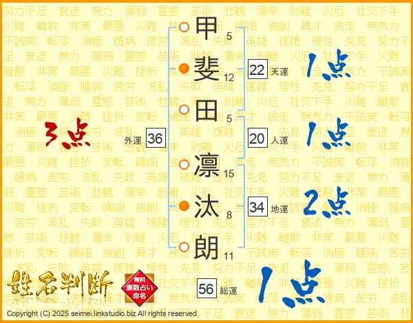 甲斐田凛汰朗さんの外運は36画の3点!