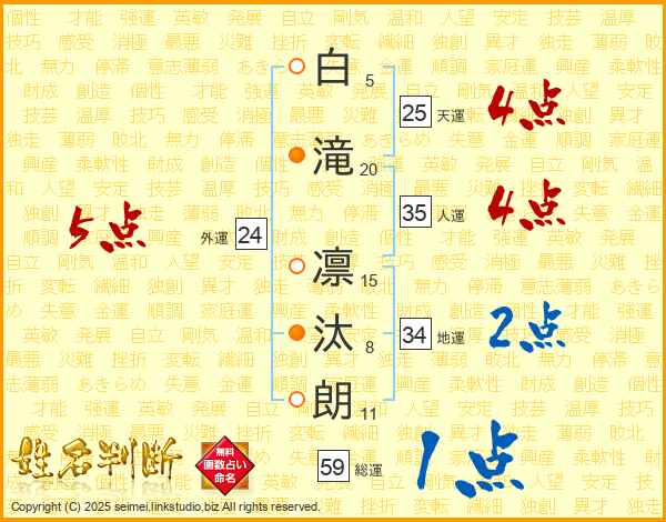 白滝凛汰朗さんの天運は25画の4点!