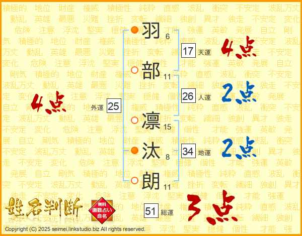 羽部凛汰朗さんの総運は51画の3点!