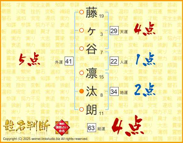 藤ヶ谷凛汰朗さんの総運は63画の4点!