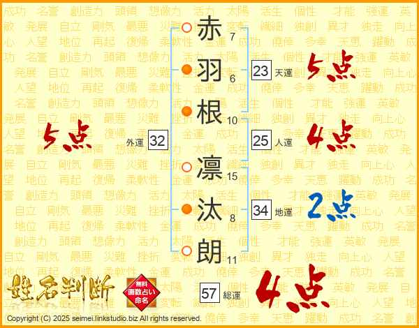 赤羽根凛汰朗さんの外運は32画の5点!