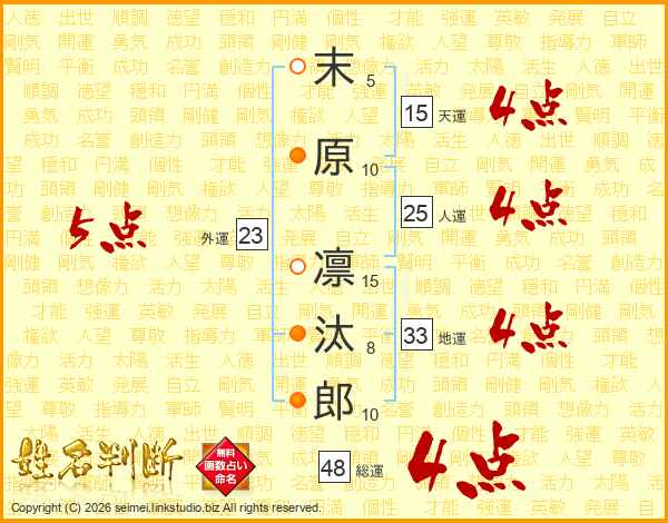 末原凛汰郎さんの総運は48画の4点!