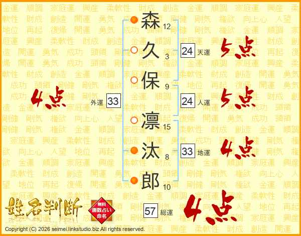 森久保凛汰郎さんの外運は33画の4点!