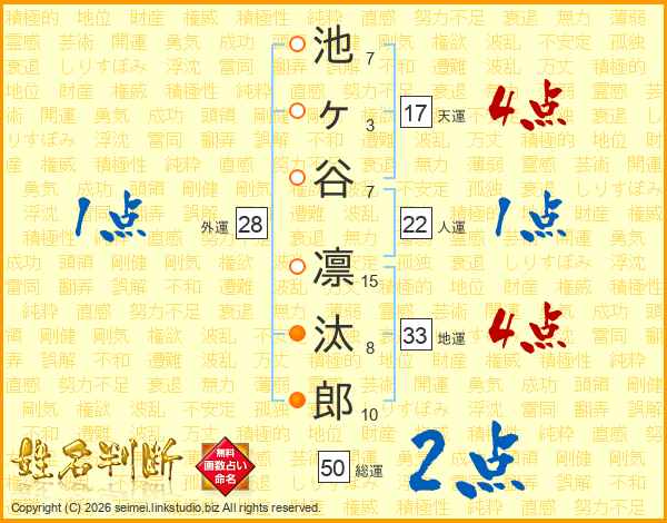 池ヶ谷凛汰郎さんの天運は17画の4点!