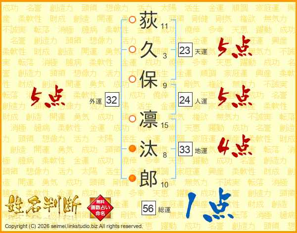 荻久保凛汰郎さんの外運は32画の5点!