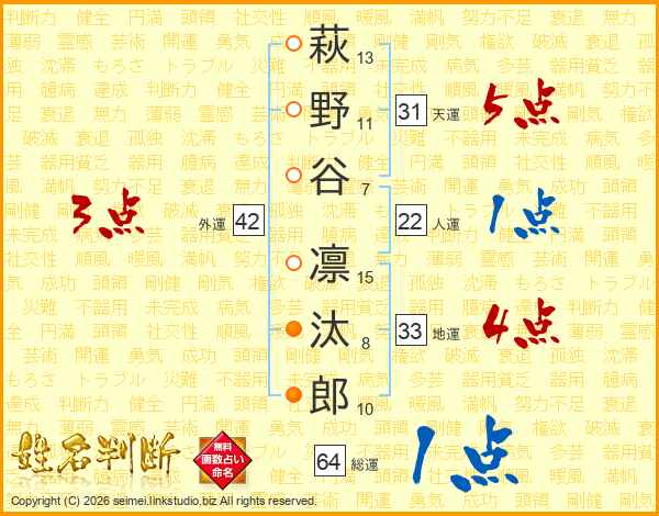 萩野谷凛汰郎さんの天運は31画の5点!