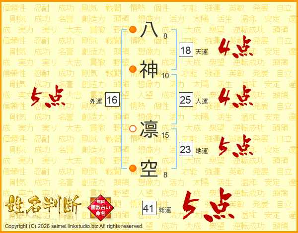 八神凛空さんの総運は41画の5点!
