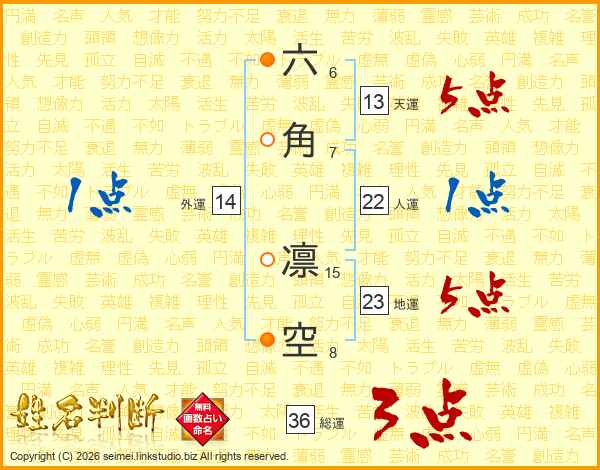 六角凛空さんの外運は14画の1点!