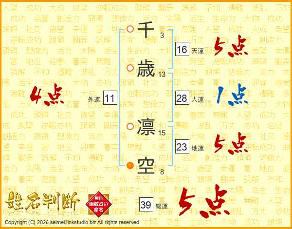 千歳凛空さんの総運は39画の5点!