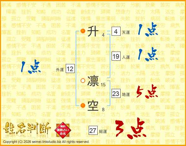 升凛空さんの地運は23画の5点!