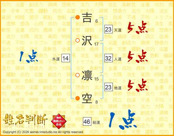 吉沢凛空さんの天運は23画の5点!