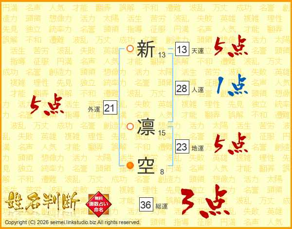 新凛空さんの外運は21画の5点!