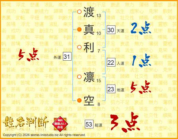 渡真利凛空さんの総運は53画の3点!