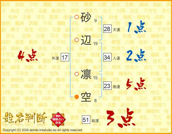 砂辺凛空さんの総運は51画の3点!
