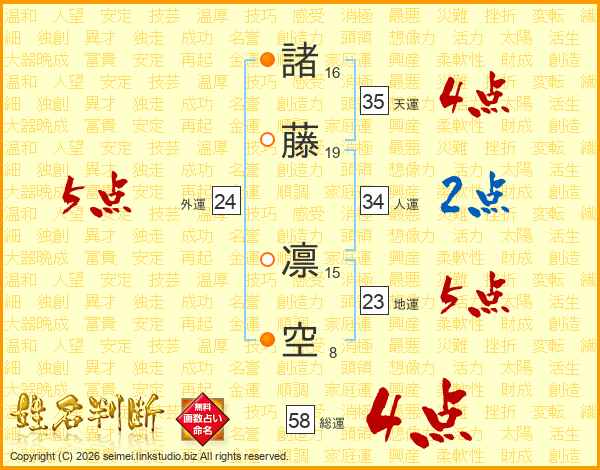 諸(16画)藤(19画) 凛(15画)空(8画)