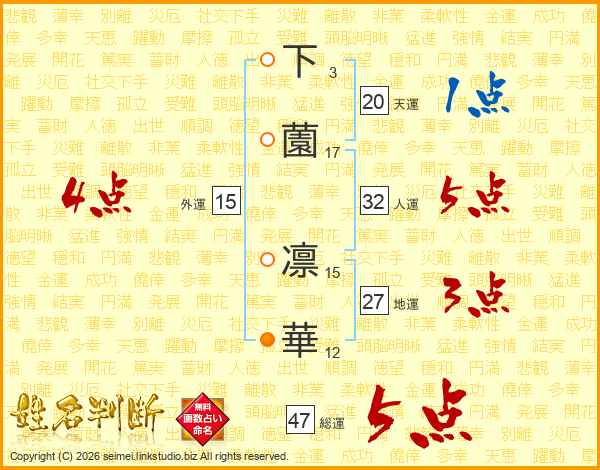 下薗凛華さんの総運は47画の5点!