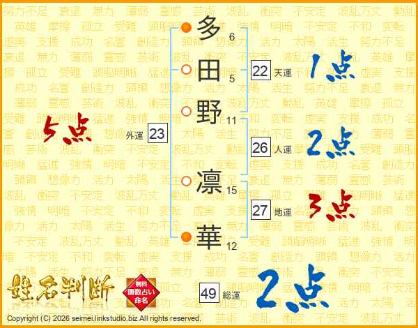 多田野凛華さんの総運は49画の2点!