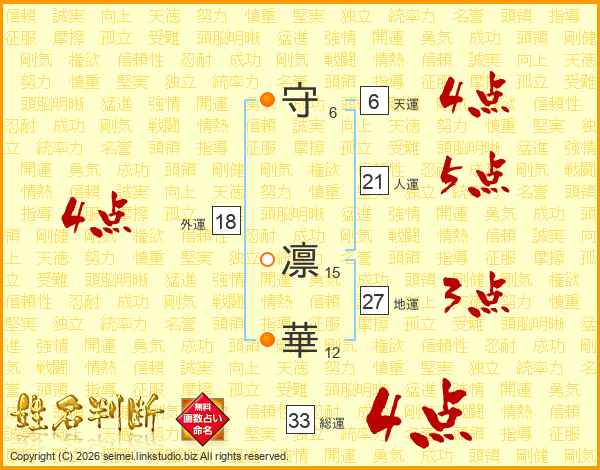 守凛華さんの総運は33画の4点!