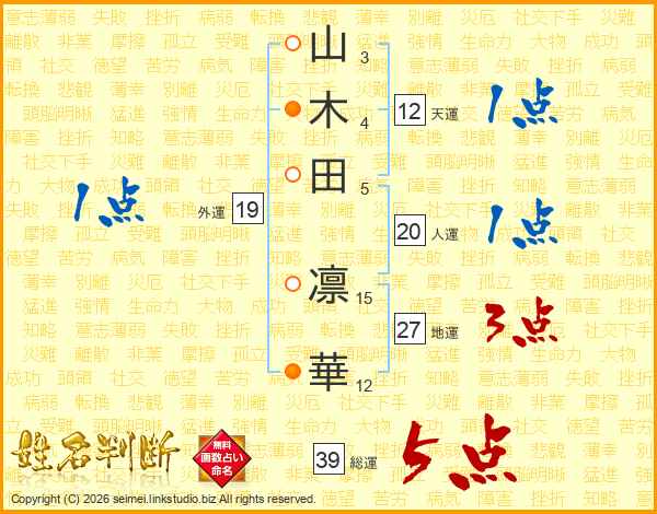 山木田凛華さんの総運は39画の5点!