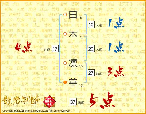 田本凛華さんの総運は37画の5点!