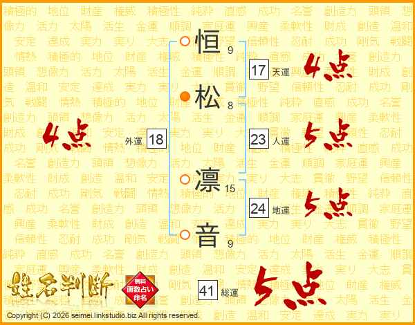 恒(9画)松(8画) 凛(15画)音(9画)