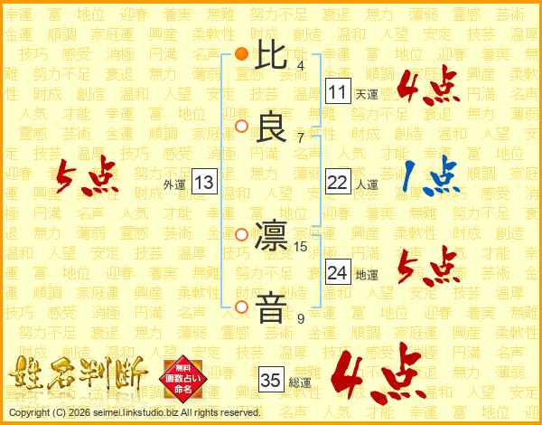 比(4画)良(7画) 凛(15画)音(9画)