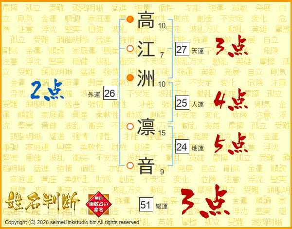 高(10画)江(7画)洲(10画) 凛(15画)音(9画)