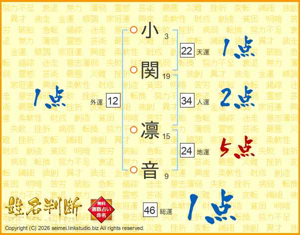 小関凛音さんの天運は22画の1点!