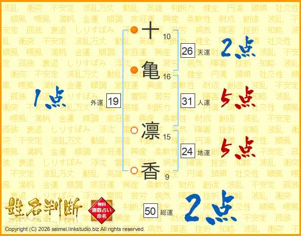 十亀凛香さんの天運は26画の2点!