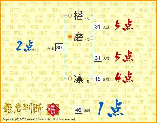 播磨凛さんの天運は31画の5点!